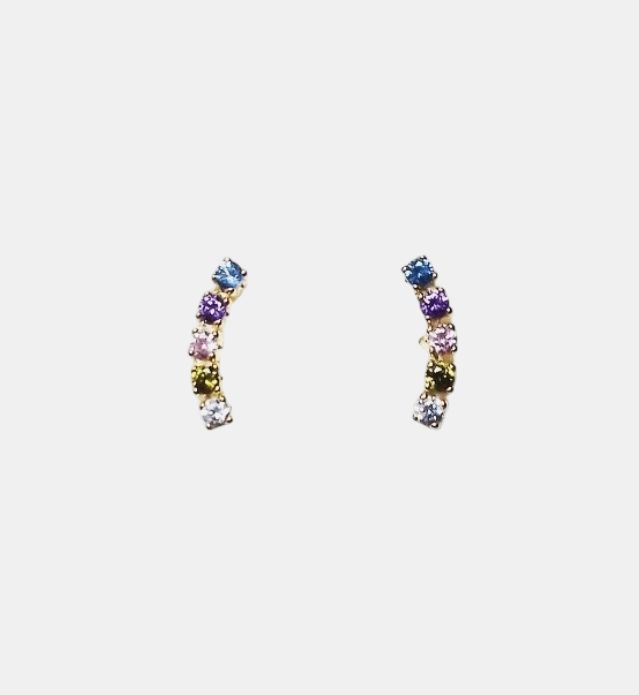 Pendiente en Oro Amarillo con piedras multicolor. Con cierre en presión y terminado en brillo